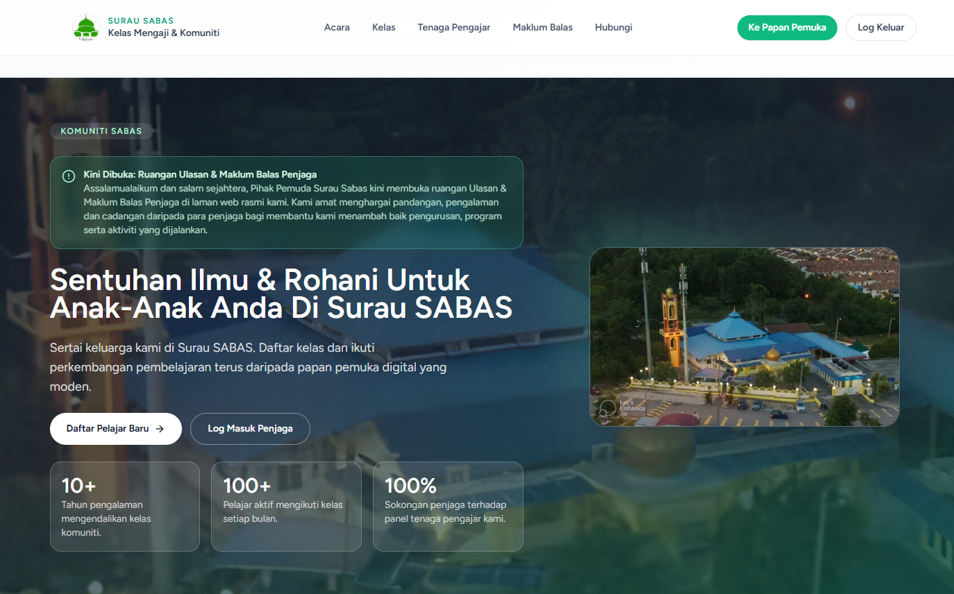 Menghubungkan anak muda dengan program dan aktiviti komuniti Surau Sabas.